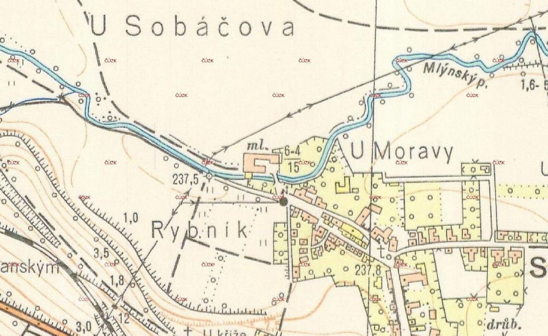 Topografická mapa - Sobáčovský mlýn, 1952, © archivnimapy.cuzk.cz