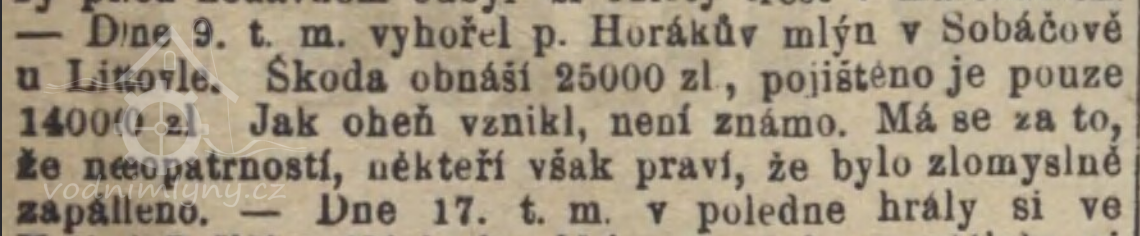 Sobáčovský mlýn v r. 1888, 1888, © autor neznámý