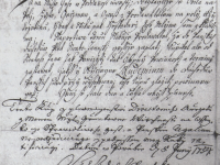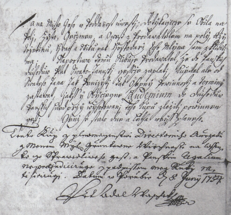 1705 mlynář Jiří, namísto vykrmení 2 prasat odvádí 1 tolar, mlýn o 1 složení náleží vrchnosti