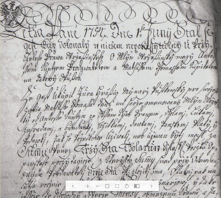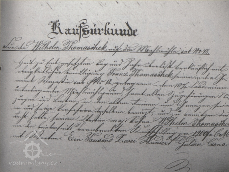 1809 od otce koupil mlýn za 1000 zl. František Tomášek ml. (4.7.1809 oo s Apolenou Tománkovou)