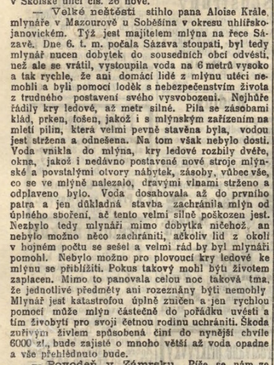 František Král (*26.10.1852; +??) mlynář z Mazourového mlýna, syn Antonína Krále mlynáře z Velkých Bečvár čp.42 a oo24.11.1886 Anna roz. Vocetná (*6.12.1865; +??)