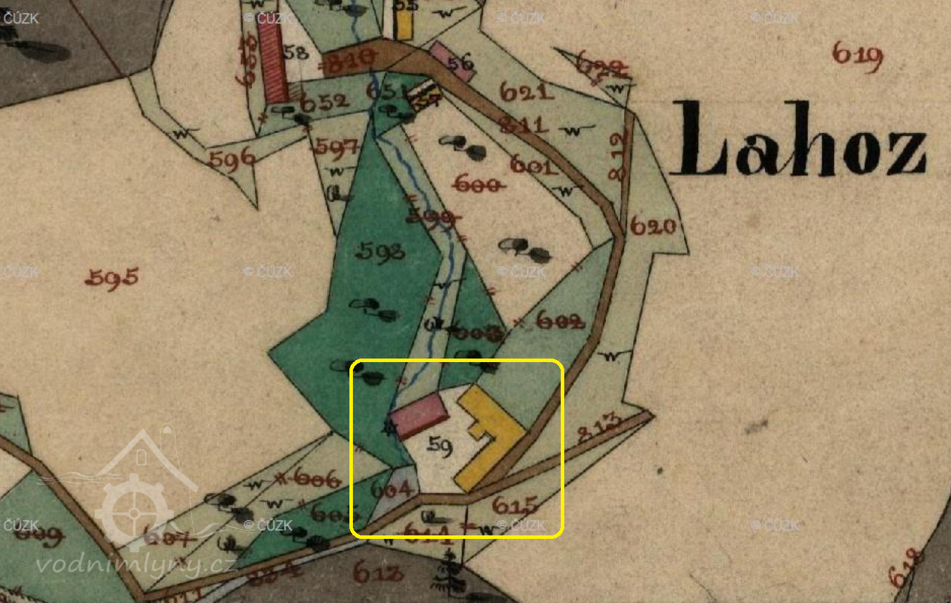 Popis1930: 1 kolo na svrchní vodu, hltnost 0,058 m3/s, spád 6 m, výkon 3 HP