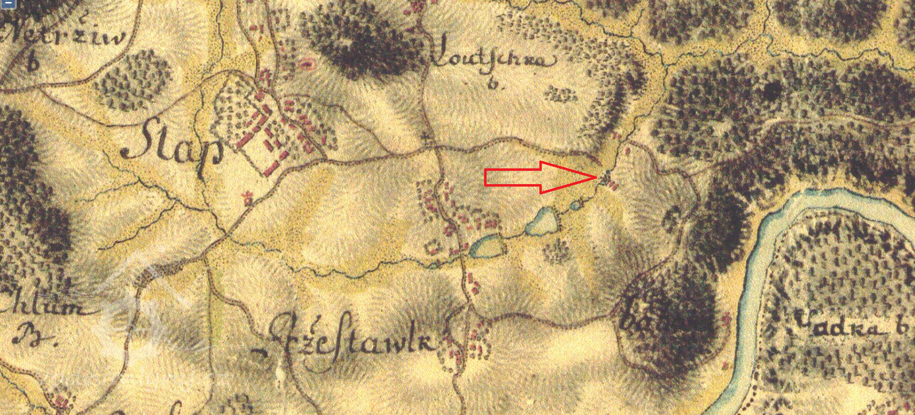 1,6 km východně od kostela sv. Petra a Pavla ve Slapech