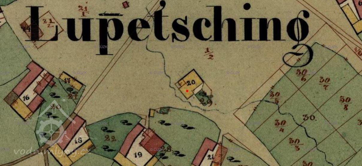 Jinak pode starých pozemkových knih byl "mlýn ve Slupečné" ve skutečnosti kovárnou, nejprve obecní, potom v soukromých rukou. Původní číslo domu kovárny bylo čp. 5, toto ale nejpozději v roce 1911 již neexistovalo, takže původní kovárna musela zaniknout. Nový dům stojící na místě původní kovárny byl jako dům se znovu přiděleným čp. 18 (předtím bylo čp. 18 jinde) zaspán do katastrální evidence v roce 1931.