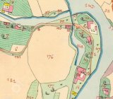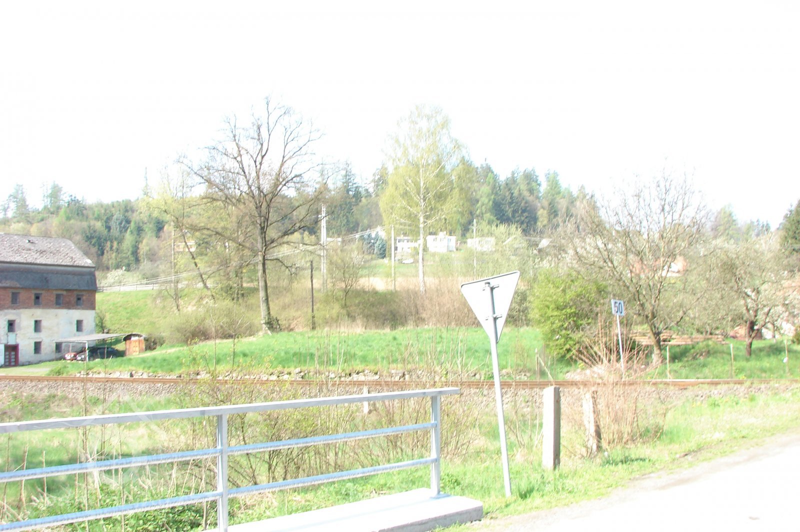 Mlýn s jasně patrnou vydělenou mlýnicí těsně u železniční tratě Prostějov-Konice.