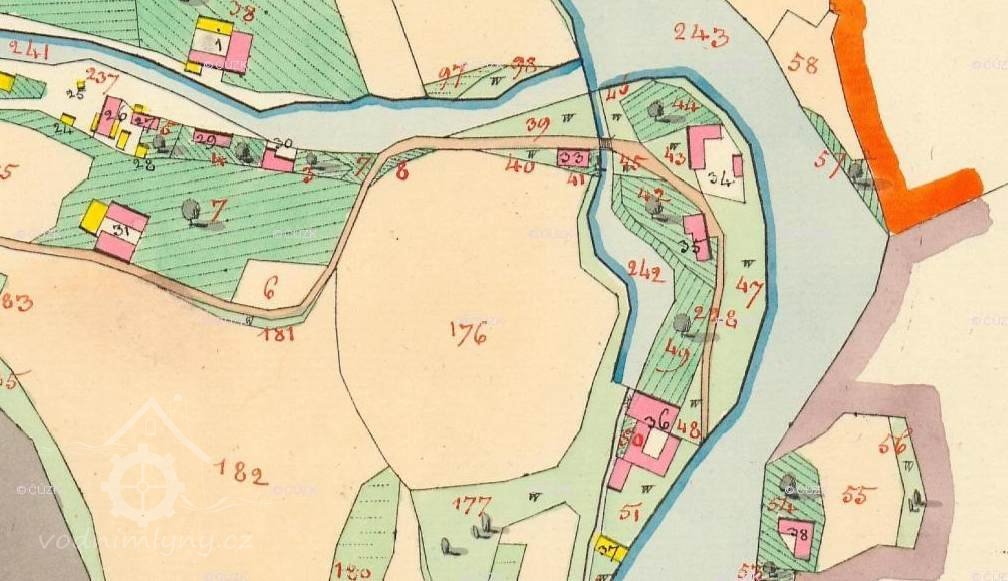 Popis1930: 1 kolo na svrchní vodu, hltnost 0,11 m3/s. spád 4,9 m, výkon 6,25 HP