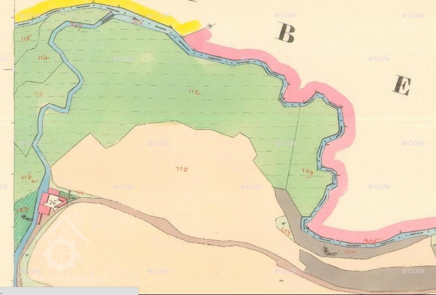 Náhon nyní napájen potokem Věžnice. Náhon z Třebůvky nejspíš přerušen.