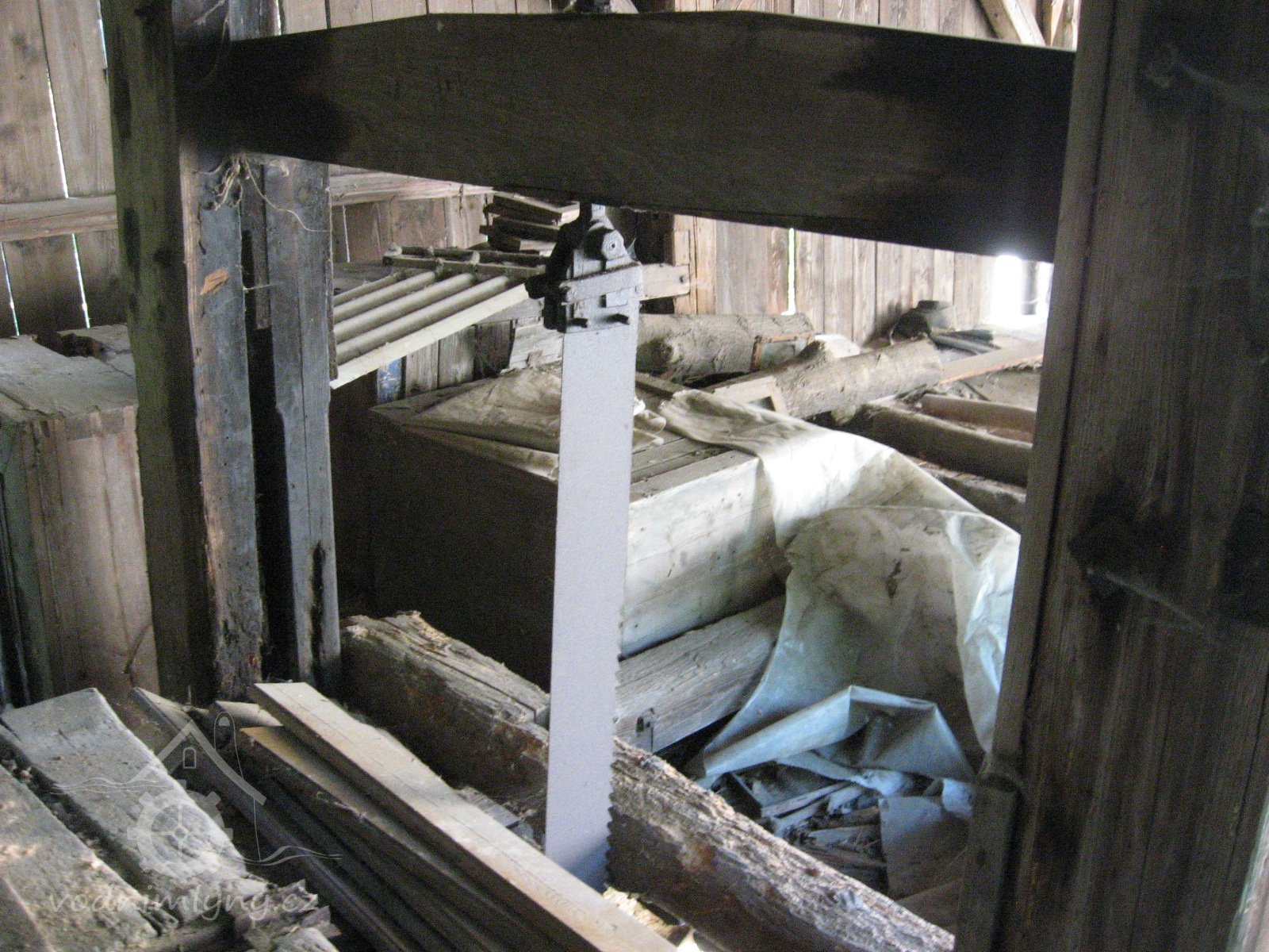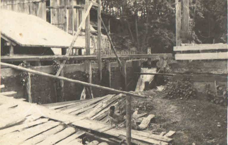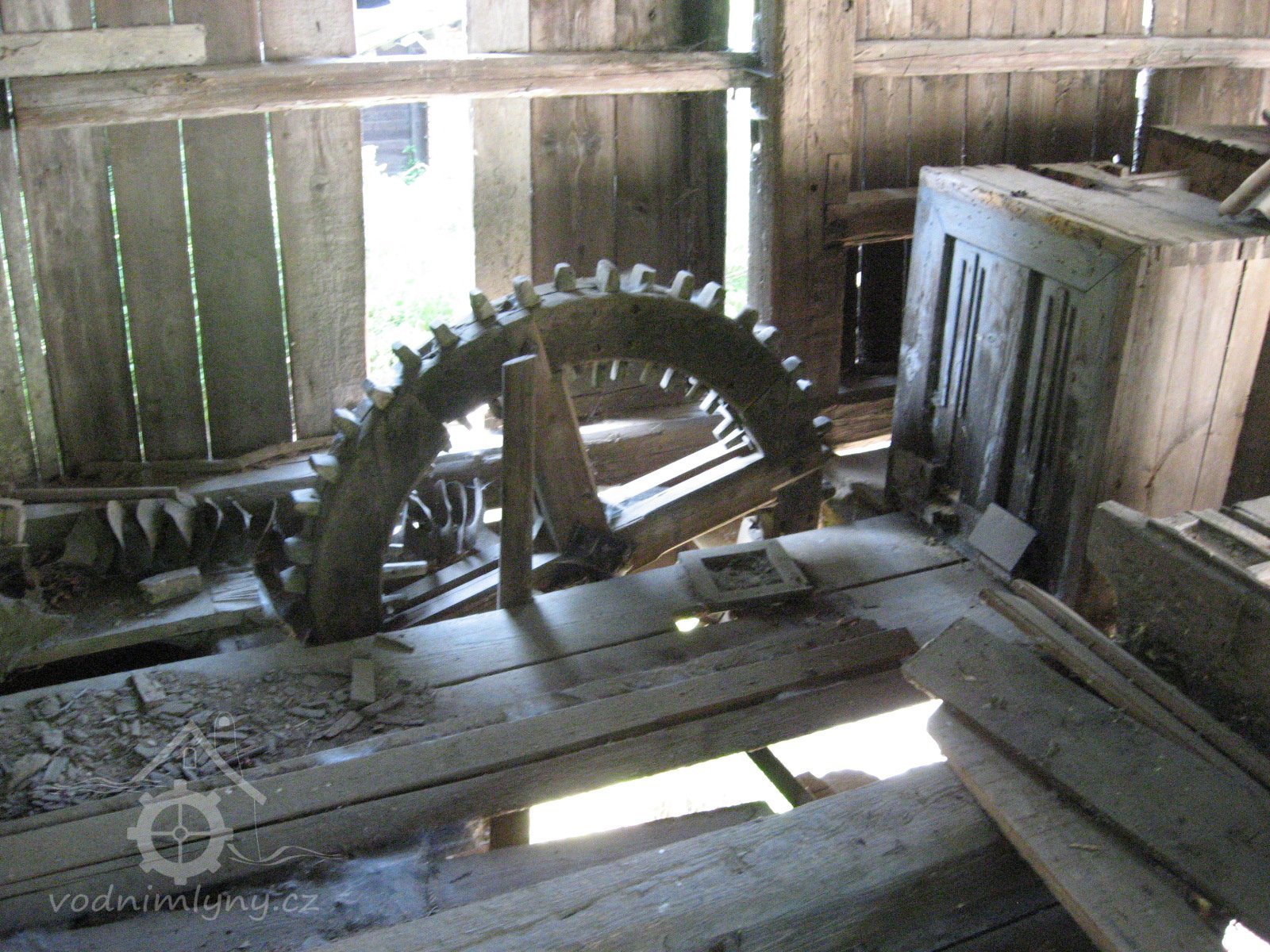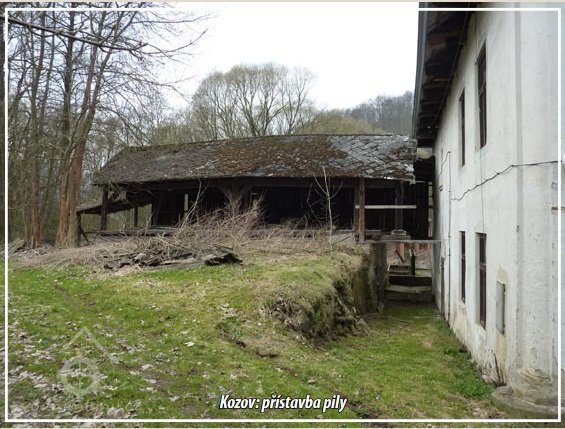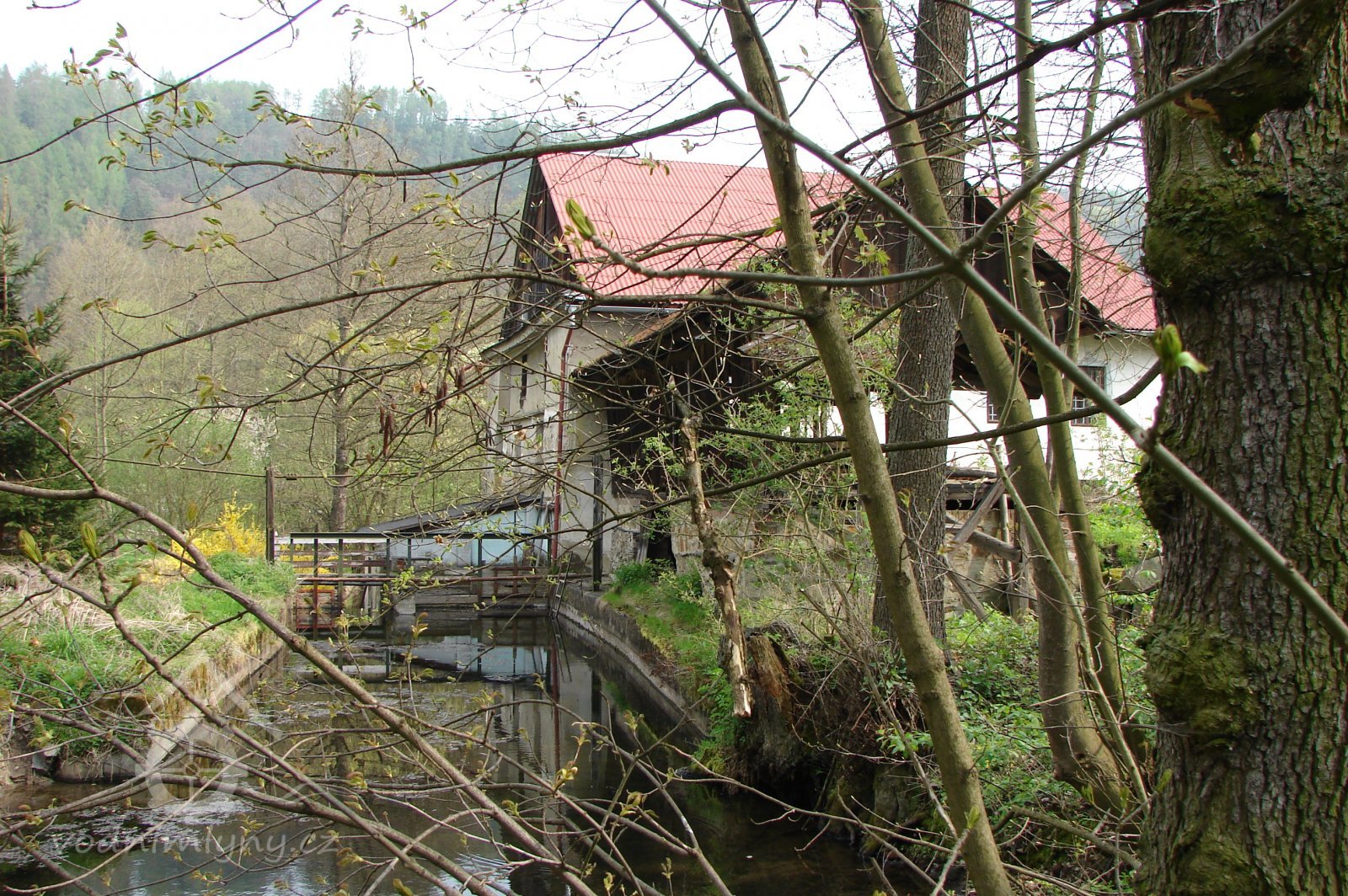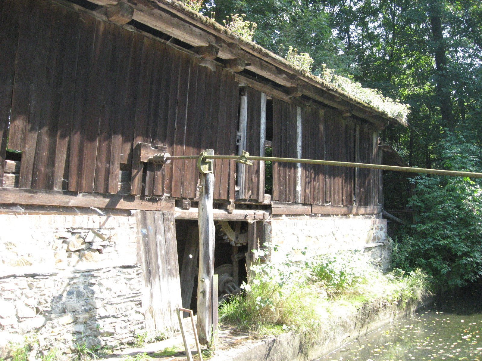 U mlýna se nacházela dřevěná budova pily, dnes se už rozpadající.