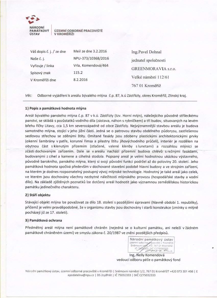 Historie mlýna také obsahuje: