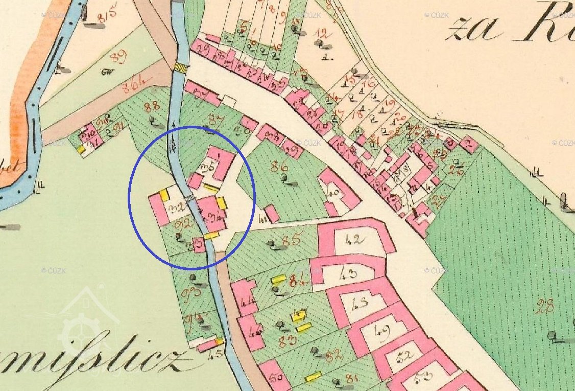 při mlýně hospodářství čp. 40 a 21 mír pole