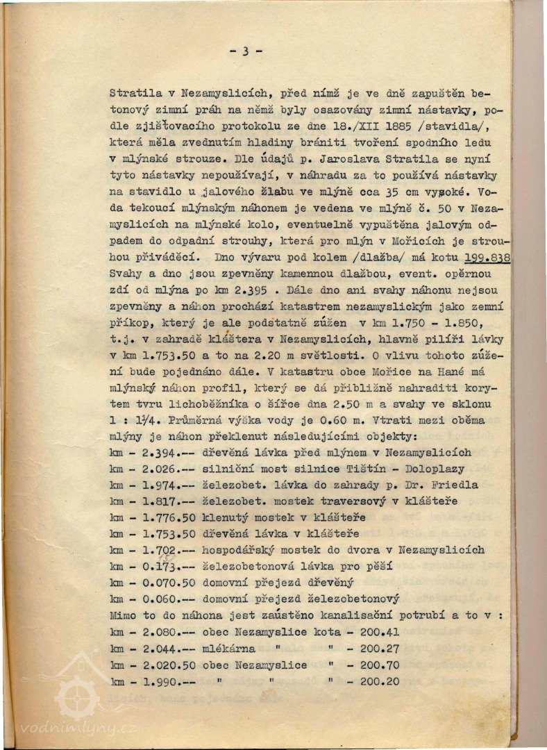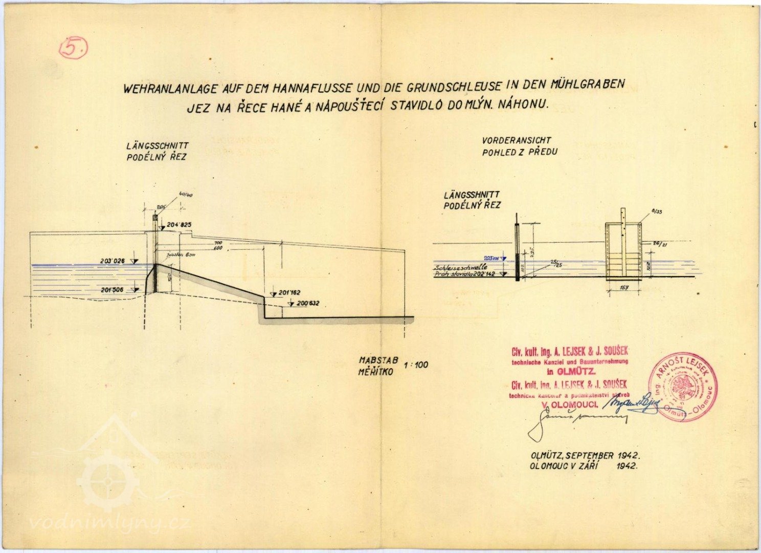 Mlýn stál na náhonu, který vedl podél řeky Hané ze Zamyslic. Do náhonu se vléval i Mořický potok.