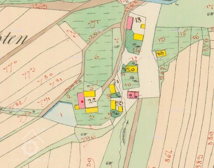 1910 na mlýně mlynářský tovaryš, čeledín a služka, chovají 2 koně, 12 ks. hov., 1 kozu a 7 prasat