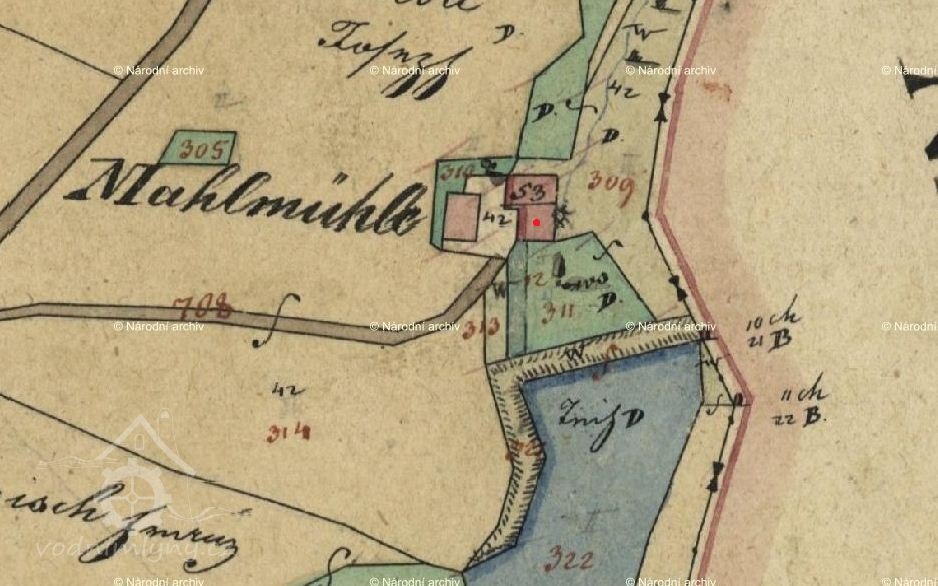 Mlýn dohledán již na I. vojenském mapování.