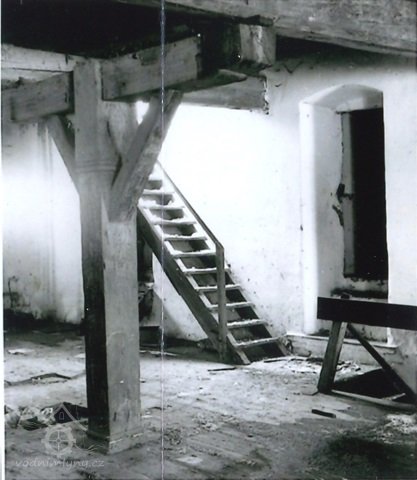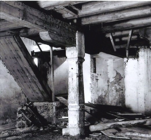 Osy vodních kol procházely návodní zdí a prostřednictvím palečního kola a pastorku otáčely mlecími kameny šrotovníků, umístěných na hranici.