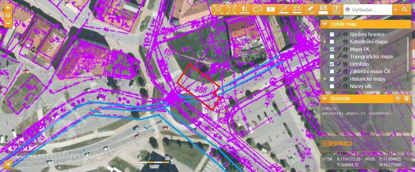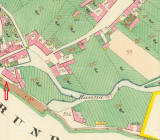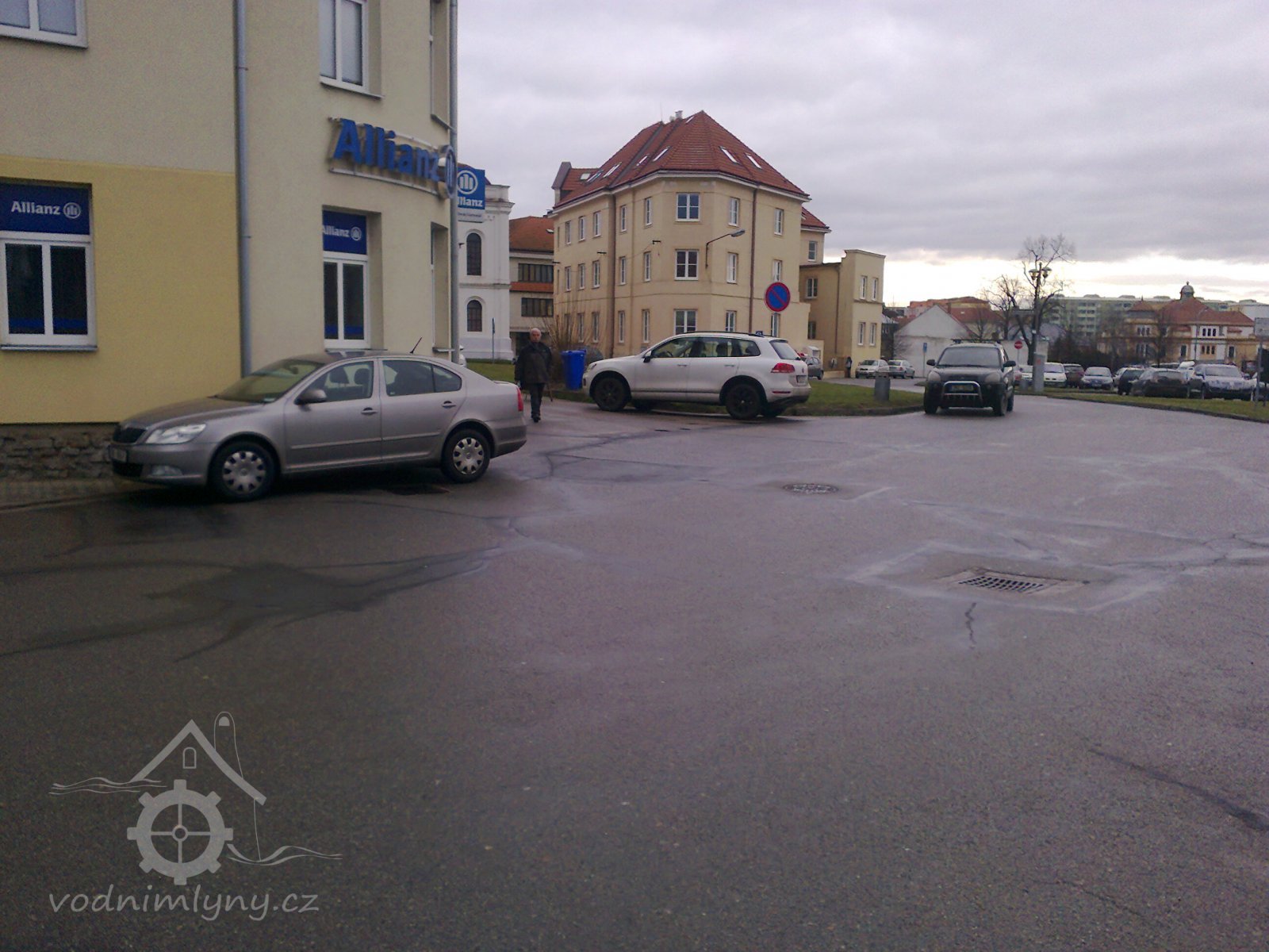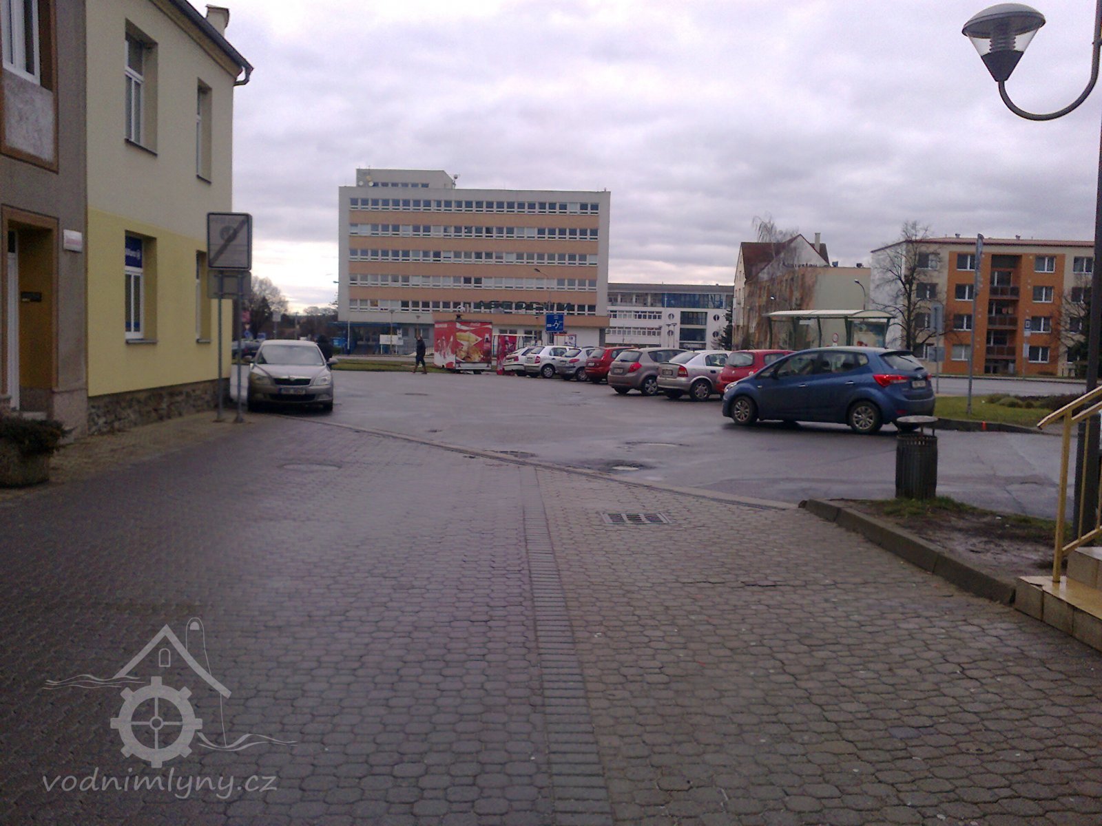 Asi 50 m východo-jiho-východně od dolního rohu náměstí