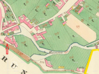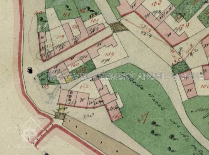 Mlýnská hranice stála u návodní zdi, obtékané vodou Rostěnky a Drnovky.