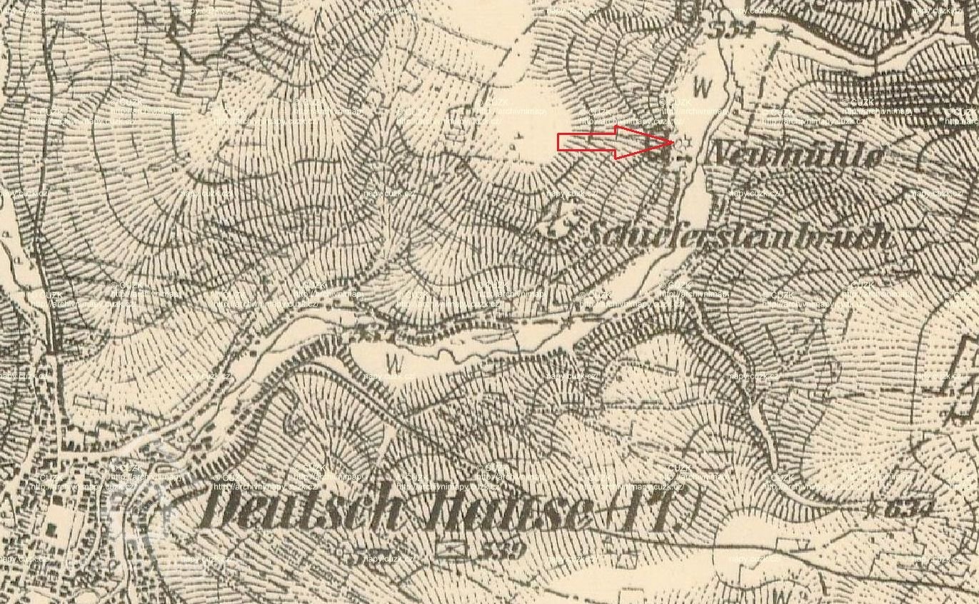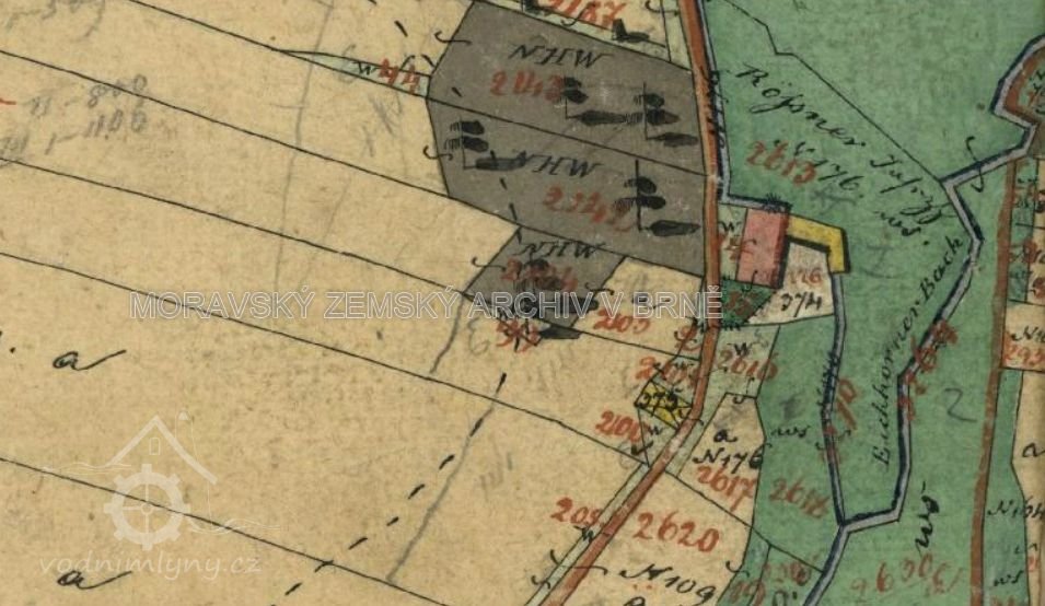 Mlýn s jedním složením byl zřízen v r. 1759 z původní pily, koupené za 933 zl. V r. 1785 mlýn prodal jeho první nájemce Josef Rösner svému synu Josefovi. Ten mlýn přenechal r. 1812 opět synu Josefovi. To již měl mlýn dvě složení.