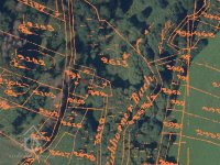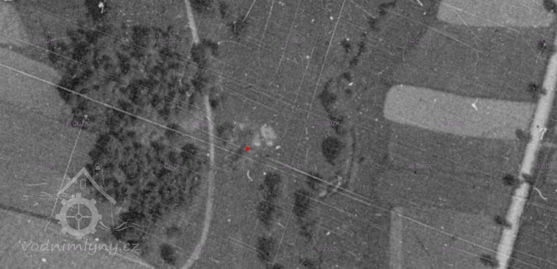 mlýn se nacházel asi 2,5 km od středu obce Huzové
