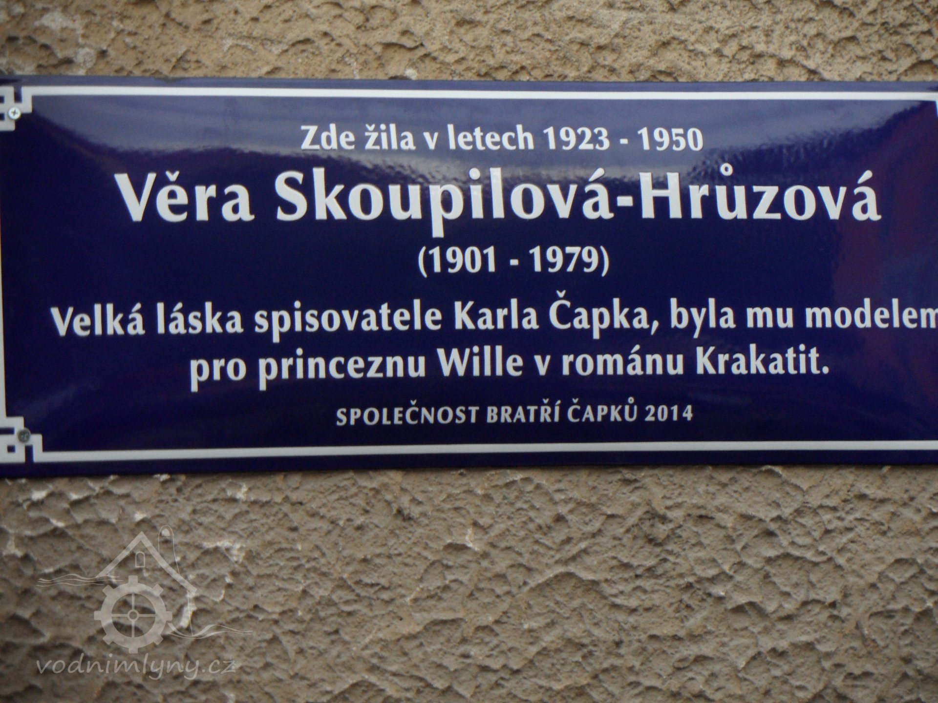 Jednou z významných životních lásek spisovatele Karla Čapka byla Věra Hrůzová. Okouzlila ho natolik, že se v různých podobách objevuje i v jeho díle. Nejzřetelněji v románu Krakatit jako princezna Wille, která se zamiluje do geniálního vynálezce Prokopa. Věra Hrůzová se v roce 1923 provdala do Skalice nad Svitavou za mlynáře Josefa Skoupila. Mlýn byl díky Věře Hrůzové místem setkávání zajímavých osobností. Kromě Čapka tam jezdili například členové šlechtické rodiny Mensdorff- -Pouilly, spisovatel Arne Novák či malíř Emil Kotrba. Na její nesmazatelnou stopu v obci i na vztah k Čapkovi upozorňuje pamětní deska na skalickém mlýně. [https://www.denik.cz/jihomoravsky-kraj/ve-skalici-nad-svitavou-odhali-pametni-desku-lasce-karla-capka-20140530-d0hg.html]