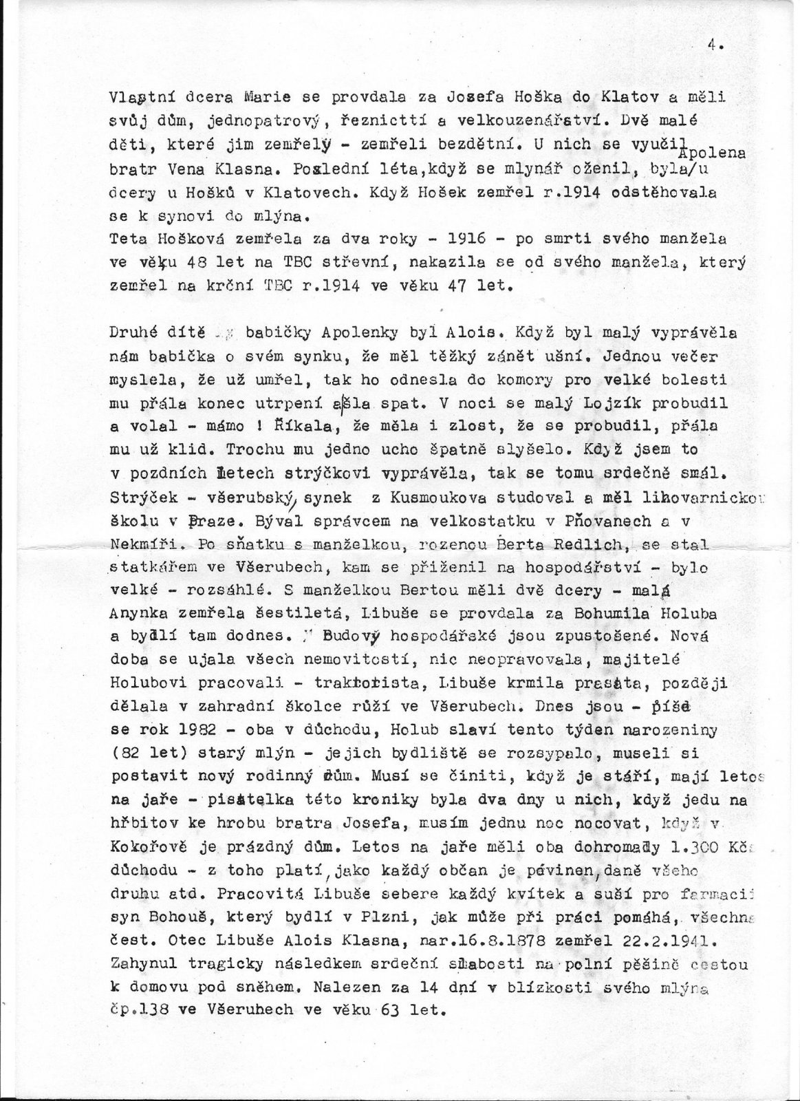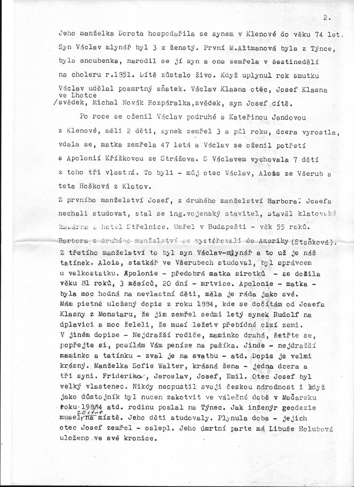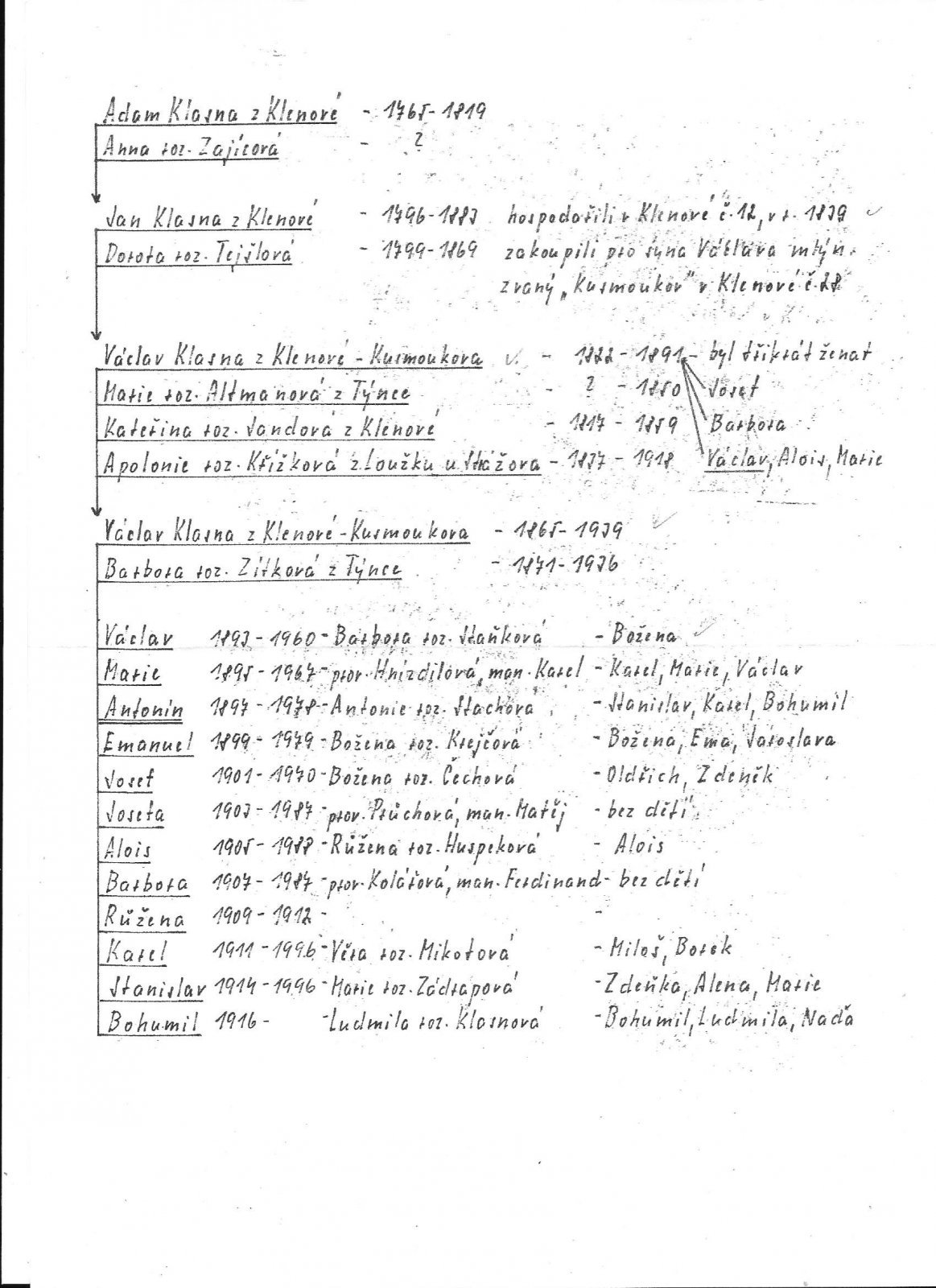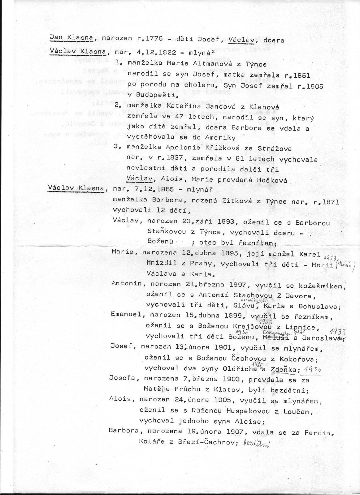 převzal Václav Klasna (*7.12.1865-1939), syn z 3. manželství, manž. Barbora roz. Zítková z Týnce (1871-1936), měli 12 dětí