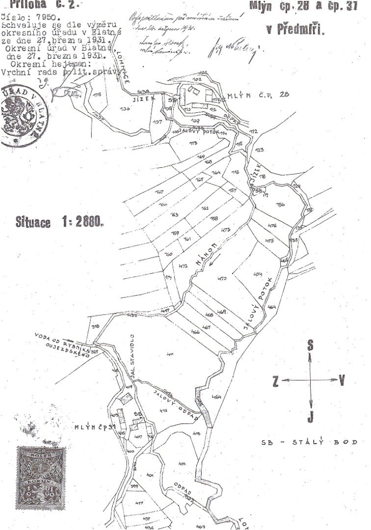 1691 mlýn šacován na 98 kop, platí 3 zl. 30 kr. činže
