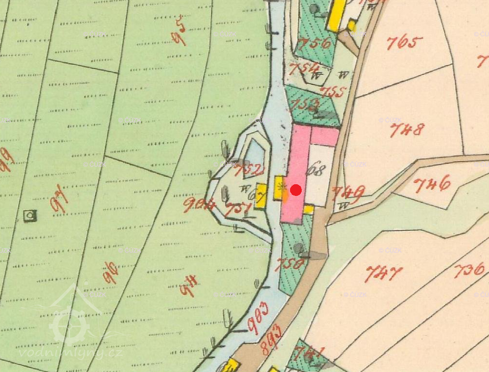 Mlýn prvně zobrazován na mapách I. vojenského mapování.