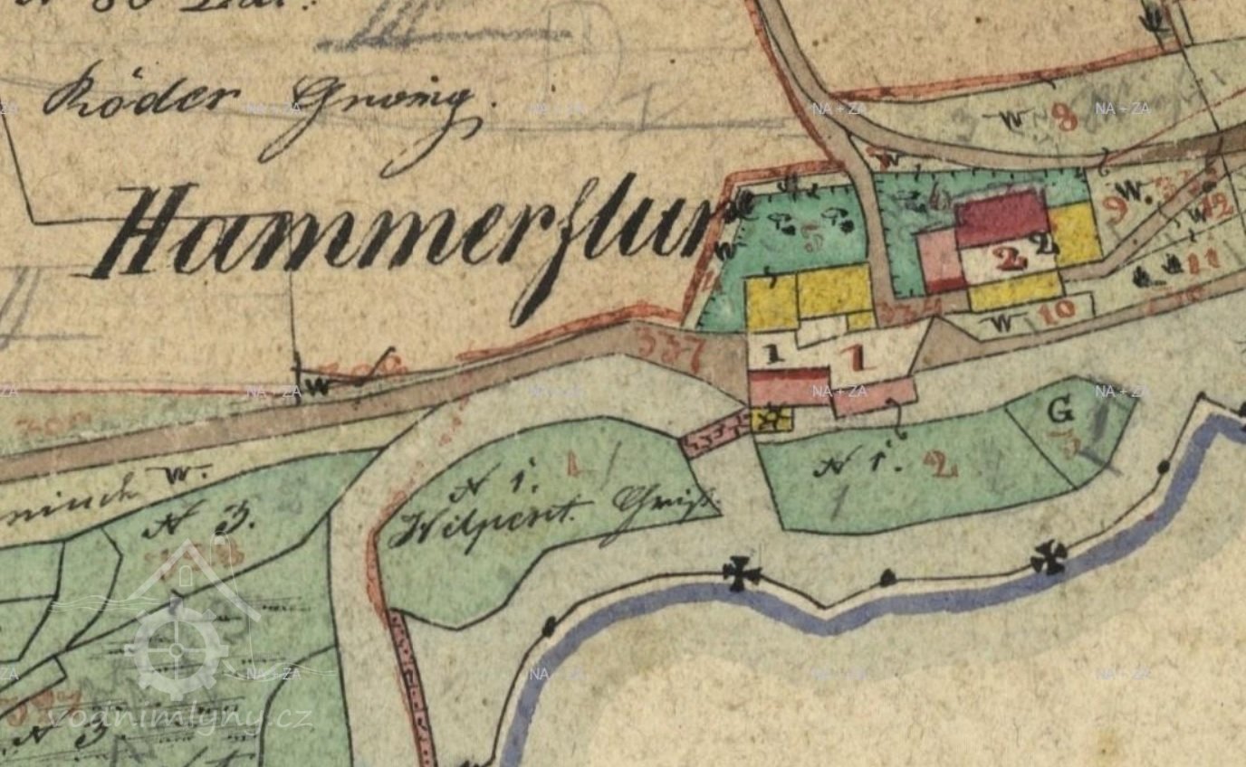 Obec na české straně měla 7 venkovských budov. Mlýn měl č.p. 1. U mlýna pramenila kyselka, která byla hodně navštěvováná.