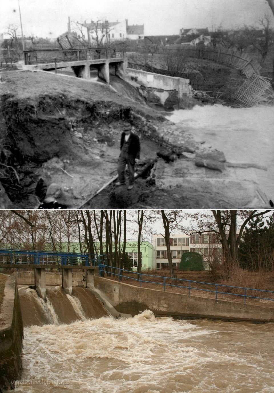 1909 mlynář Karel Hrozek ml. financoval obnovu jezu na řece Hané za vyškovskou sokolovnou