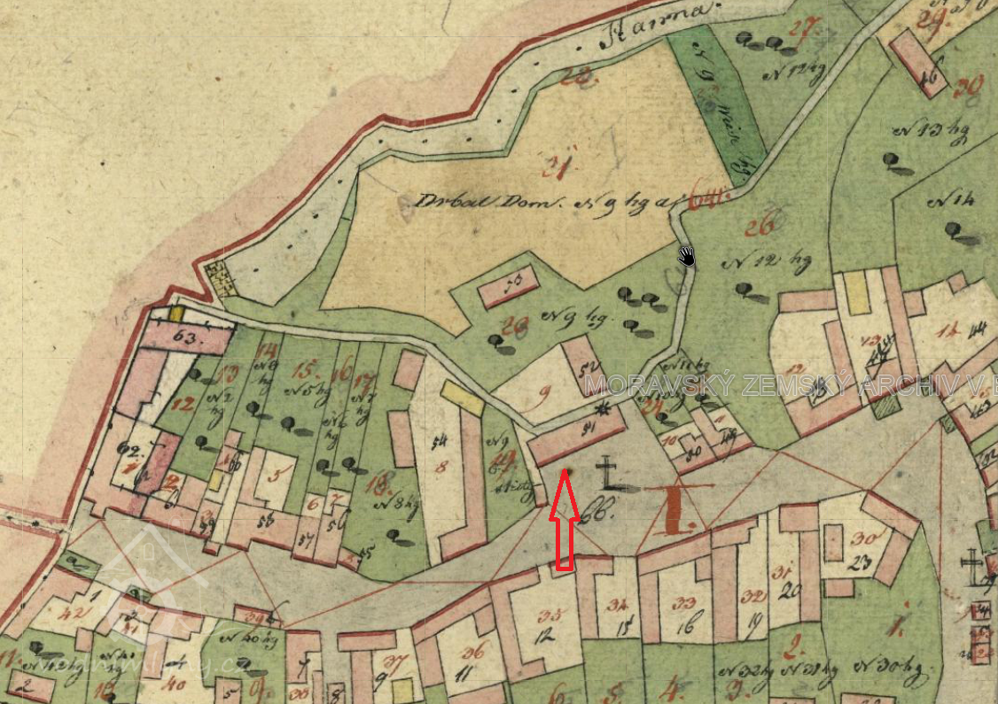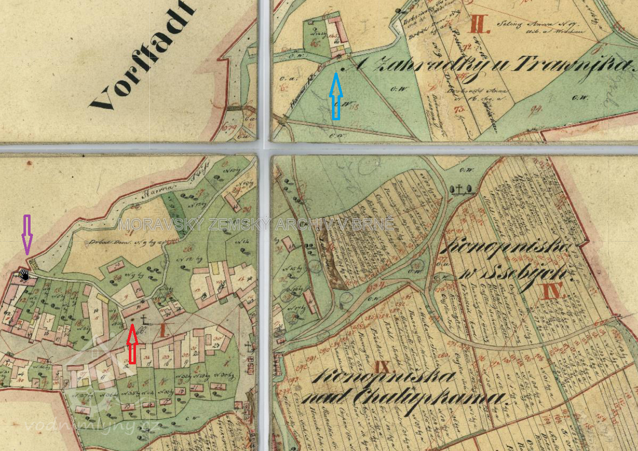 Mlýn stával za kapličkou v Křečkovské ulici Vyškov zhruba jak je plot za kapličkou.