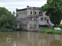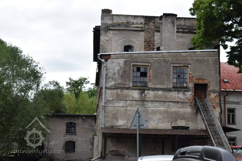 Rozsáhlá dvoupatrová mlýnice o půdorysu asi 25 * 10 m. Na ni kolmo postavená obytná budova mlýna, která zároveň tvoří západní stranu hospodářského dvora.