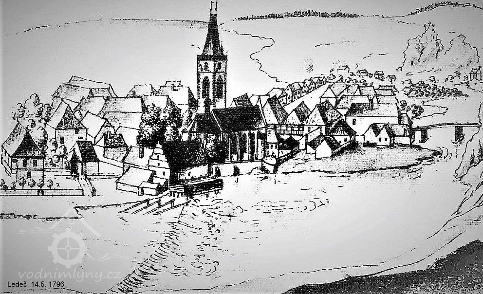 Rozsáhlá budova dvoupatrového mlýna, který stojí přímo na levém břehu řeky Sázavy. K mlýnu pravoúhle přiléhá patrová obytná část. Mlýn byl původně součástí hospodářského dvora patřícího k Ledečskému hradu, nacházejícímu se na ostrohu na protějším břehu řeky Sázavy.