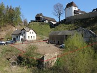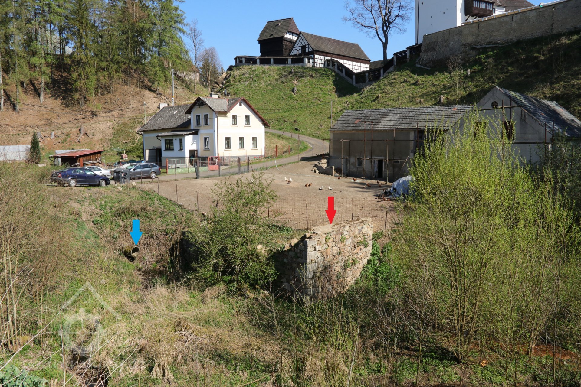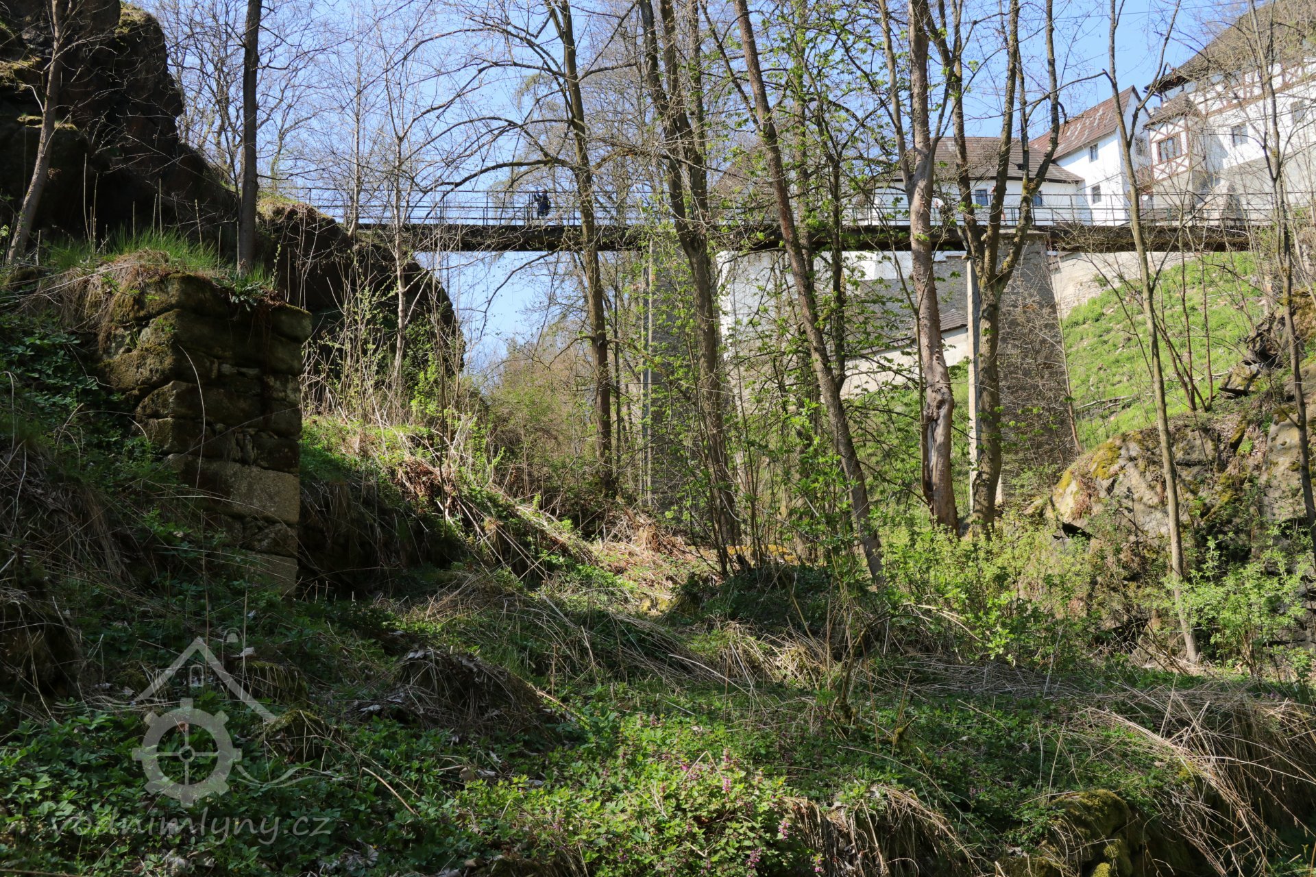 Ve skalnaté propasti, která obklopuje hrad na severu a západu, teče Slatinný potok na kterém staly 3 mlýny - obilný s pilou, další obilný a kostní. O něco dál stálá ještě drátovna.