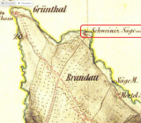 Schweinitz Mühl. Hält jetzt H. Adam Schroll, aus Böhmisch Grünthal . Welche durch Moritz von Horn, vor Zeiten mit Martin Hänelz zur Prandtow vertauscht worden.