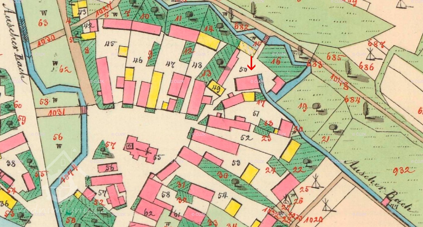 1951 - mlýn vyobrazen na topografické mapě systému S.
