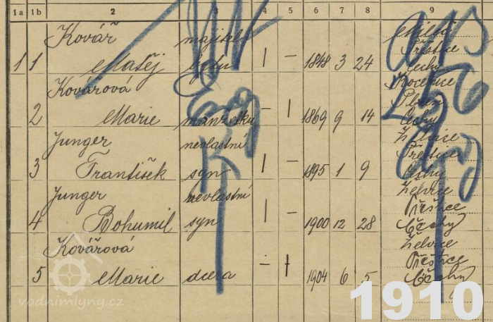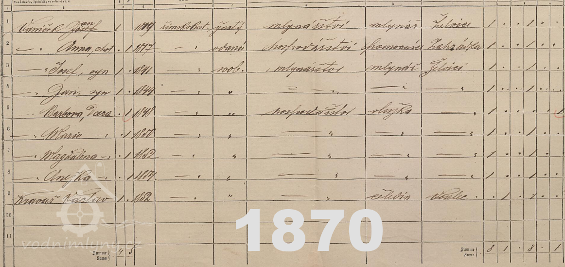 1810 František Vaněček s manželkou Kateřinou převzali mlýn oceněný na 1350 zl.