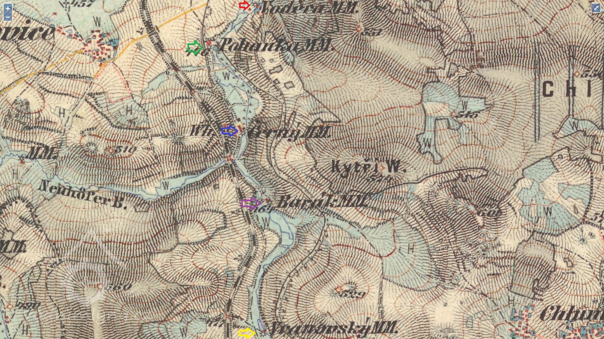 Mlýn zobrazován na mapách I. vojenského mapování.