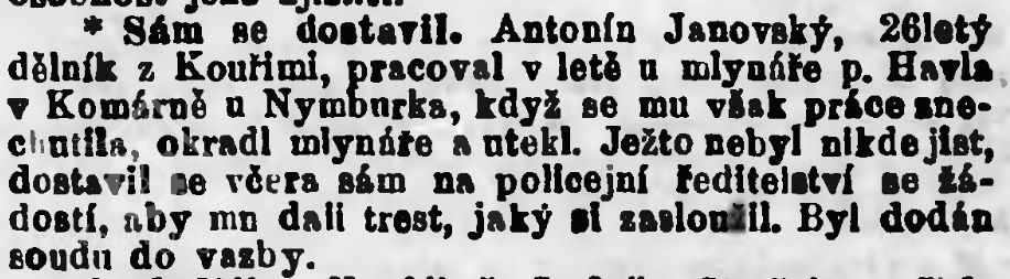 1673 nájemce mlýna Jiří Čapek žádá městskou radu, aby mu pro "špatnost mlýna" snížila nájemné. Sníženo o 30 zl., nadále platí pouze 90 zl.