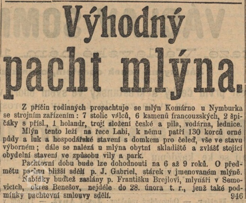 Oba mlýny, Komárno i Baštu, pak spravoval mlynář z Bašty