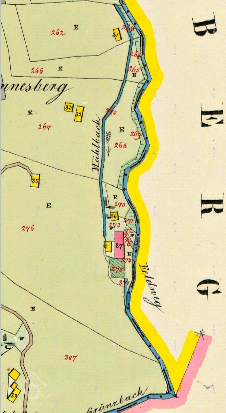 Podle zápisu Vodní knihy byla v roce 1924 majitelkou mlýna v Hraničné č.p. 117 Adele Neger (ová). Dřívější majitel Hirschmann. Na plánu obce Hraničná z roku 1936 je uvedena majitelka usedlosti č.p. 117 Neger Dora. (Fr. Křůmal)