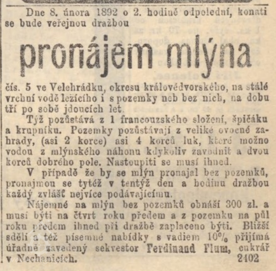 V r. 1921 obývali mlýn: