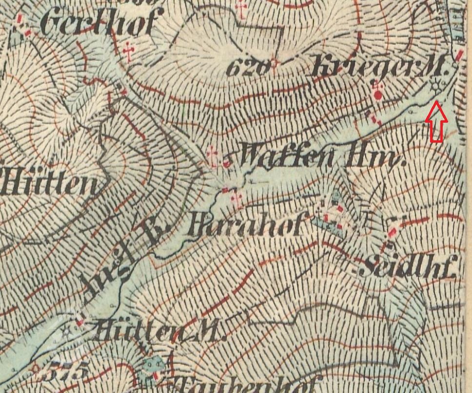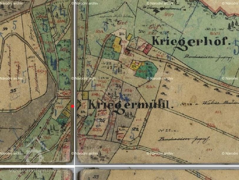 Mlýn dohledán na mapách I. vojenského mapování.