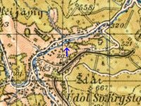 Zaniklý mlýn s pilou v obci. Dnes se na mlýništi nachází zahradní domek.