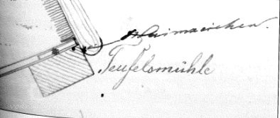 Již roku 1608 je v matrikách zmiňována mlynářka z Teufelsmühle.