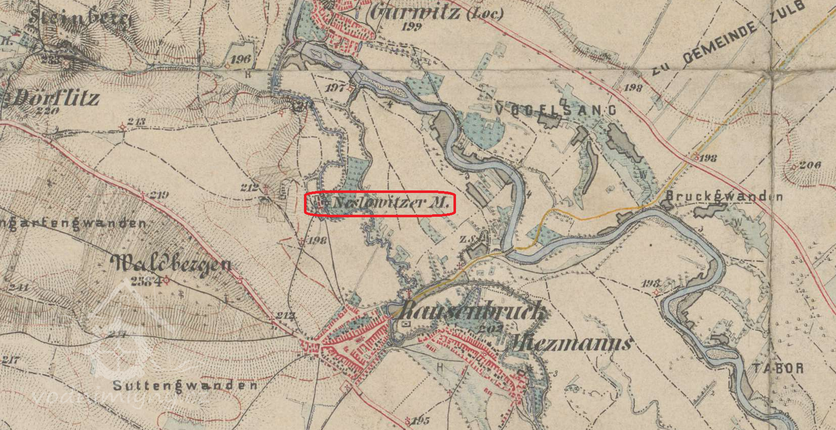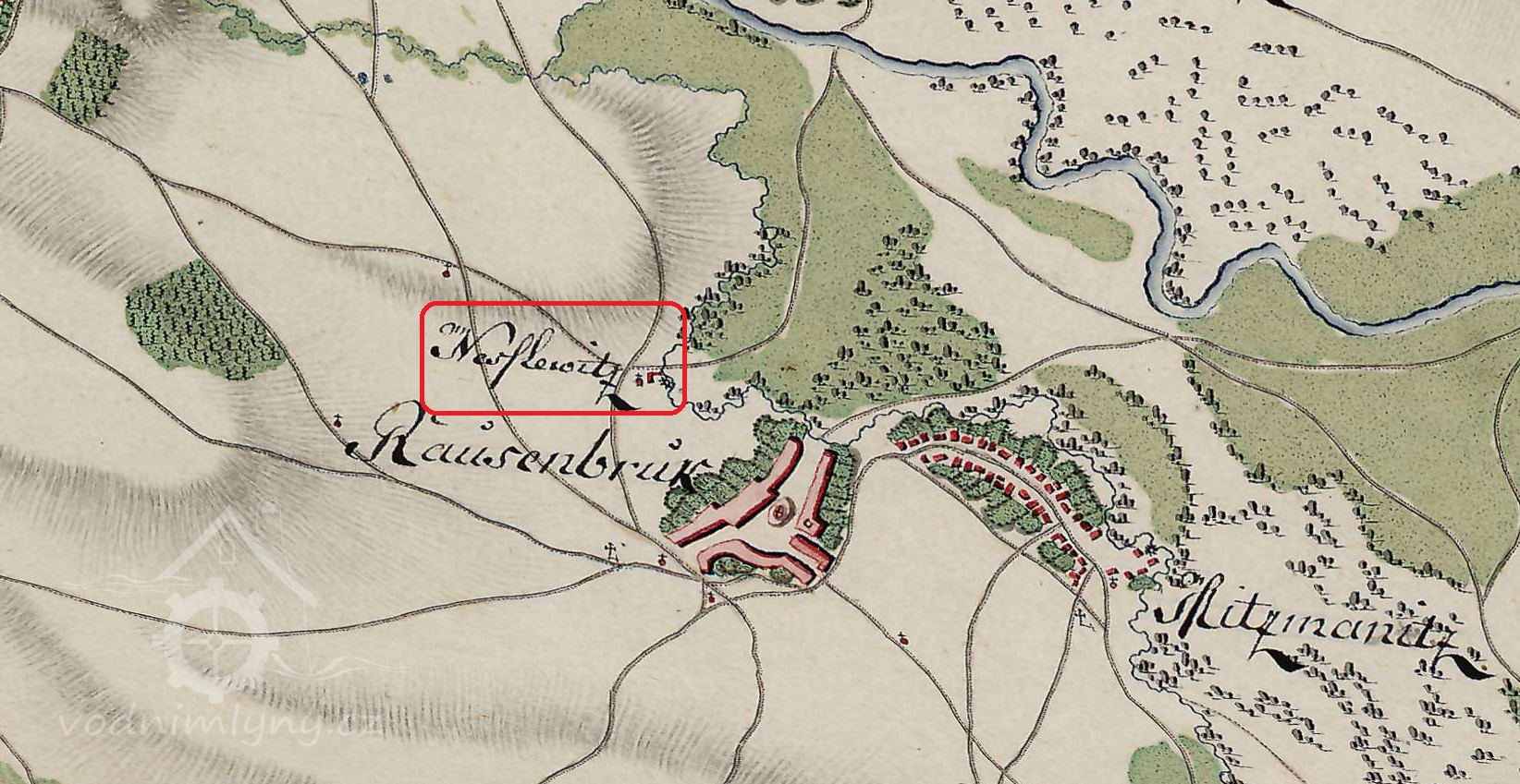 Klasicistní vodní mlýn na místě bývalé obce Neslovice. Mlýn patřil do soustavy středověkých mlýnů na na tzv. Krhovicko-jaroslavickém náhonu.