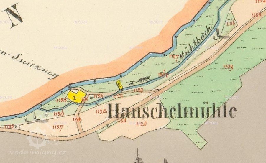 1907 Jaroslav Marek na místě mlýna postavil tkalcovničku na 6 stavů