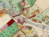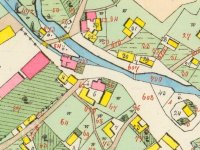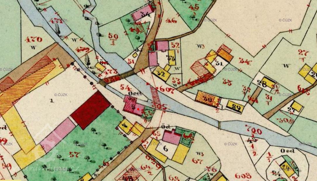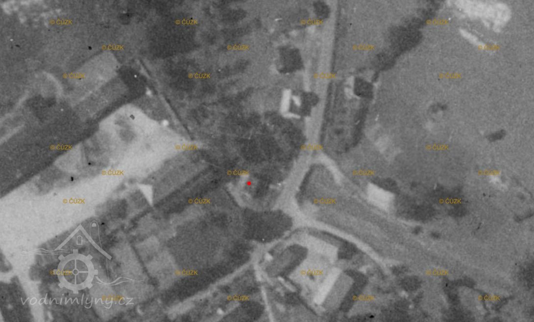 Zbořený mlýn, nacházel se vedle dnešního mostu přes potok Plesná.