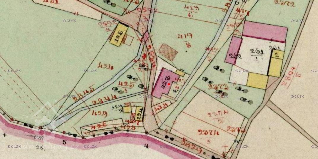 V Hesseliově urbáři z roku 1676 je v těchto místech zakreslena stoupa na olej a tříslo.