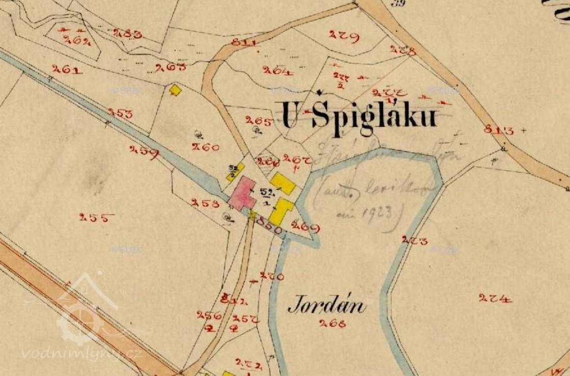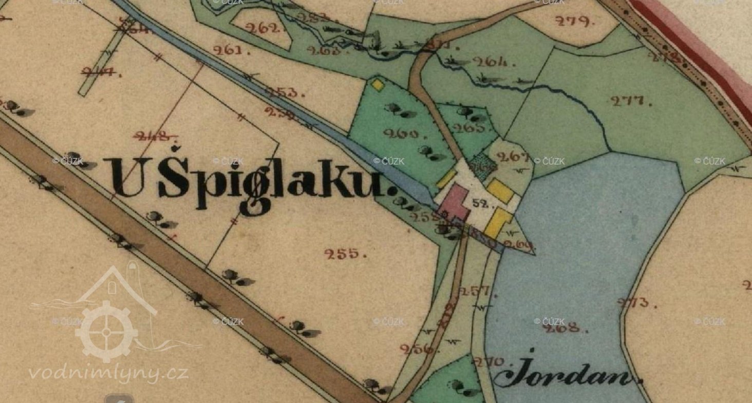 Mlýn Špíglák pocházel z roku 1590. Vystavěl jej mlynář Turek.(překopírováno z ident. údaje HŠ)