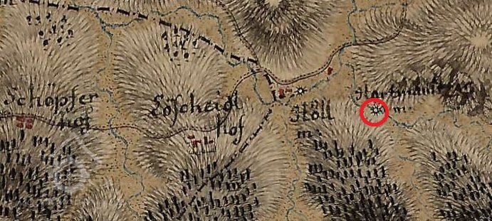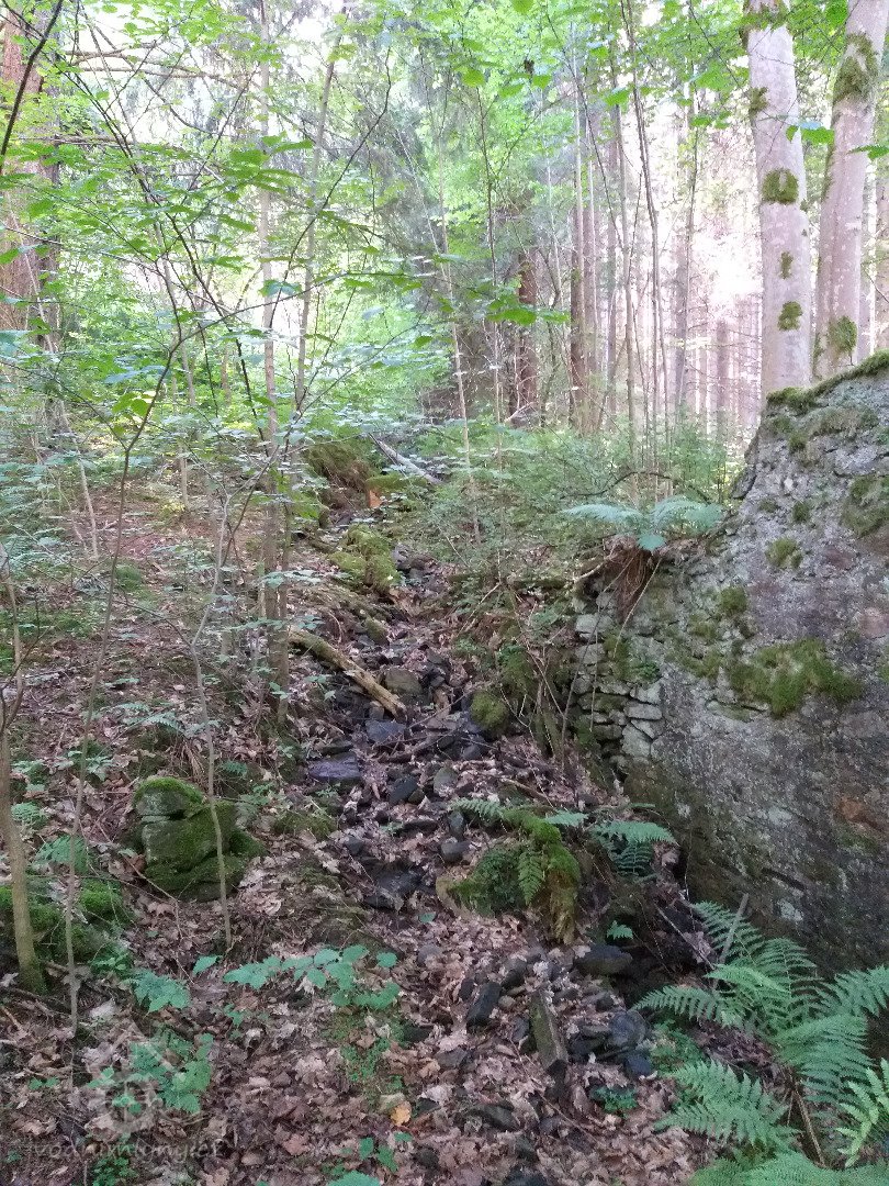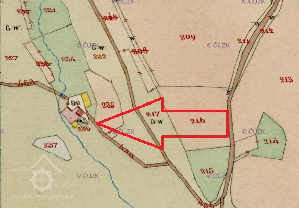 Mlýn kreslený již na 1. vojenském mapování, vzhledem k nestálosti toku byl nad ním rybník, který se (byť vypuštěný) dochoval dodnes, ve 2. a 3. vojenském mapování již není zakreslen jako mlýn, avšak v terénu dochovány zbytky zděných budov dodnes.