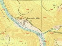 Bývalý mlýn Loupalův u Popůvek byl zbourán v roce 1970 v souvislosti s budováním vodní nádrže Dalešice.